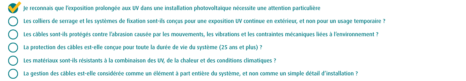 Checklist – résistance UV à long terme